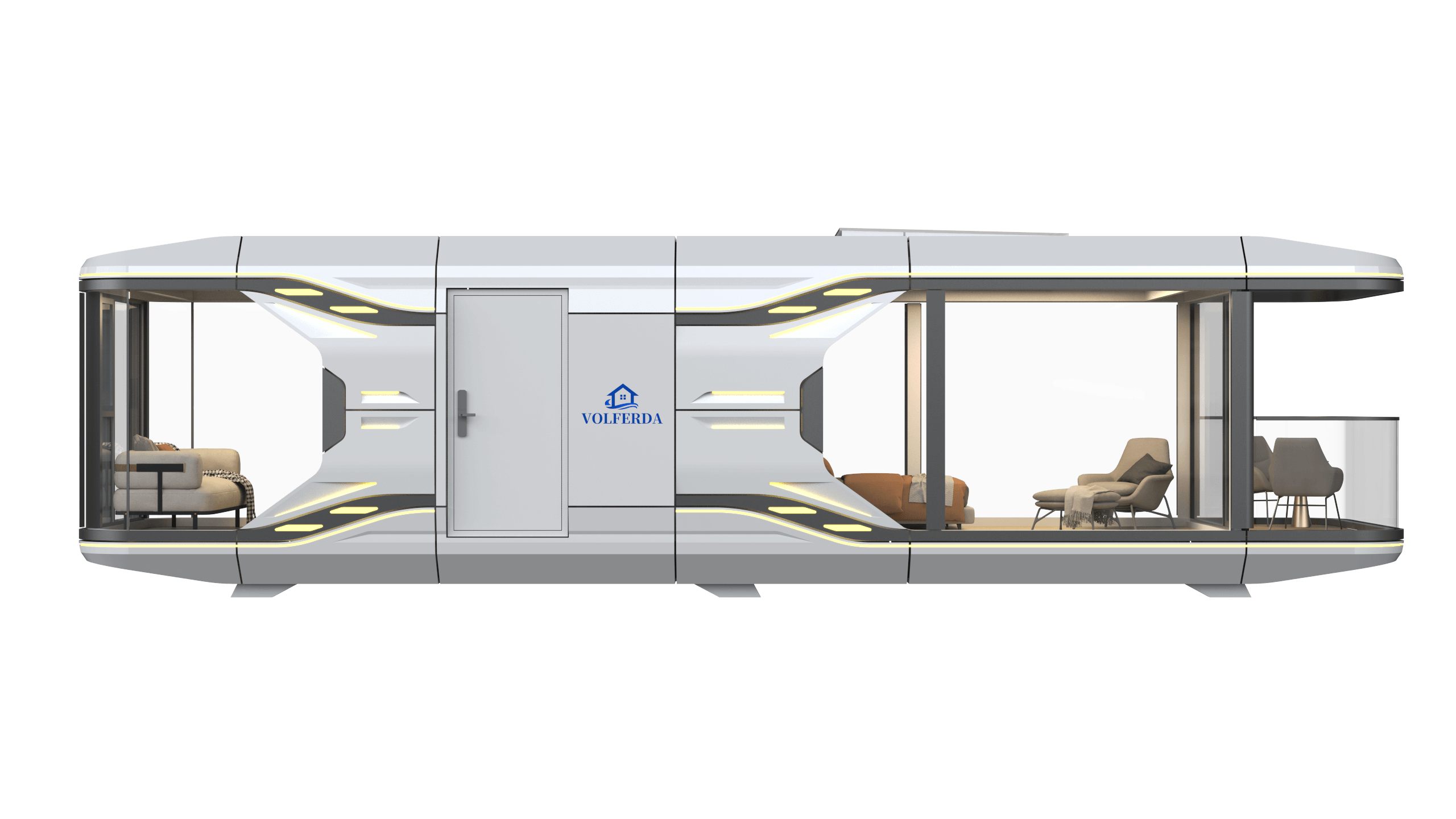 Delivery method: there are two delivery methods for Volferda E8 capsule house, the whole house and disassembled modular houses. For the whole house delivery, the house will be shipped in 40 flat rack container due to the wide width of the house up to 3.2m. Therefore, the shipping costs are relatively high and suitable for only 1-2 houses. For the disassembled modular houses delivery, the house will be shipped in 40 HQ. This saves shipping cost and is suitable for purchasing large quantity of houses.